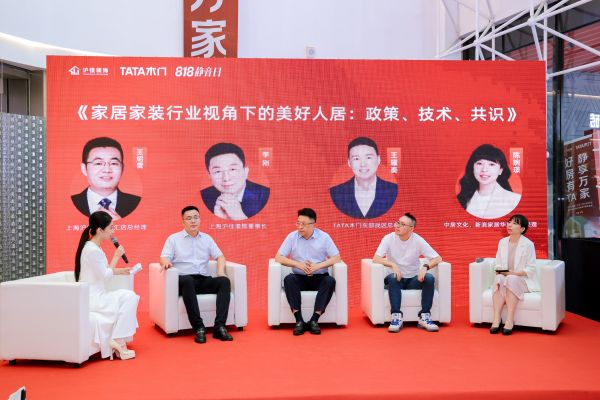 在随后举行的高峰论坛环节,沪佳装饰董事长李刚、徐汇店总经理王绍雷、TATA木门东部战区总裁王耀奏、中居文化及新浪家居华东副总经理陈婉璟共聚一堂,围绕“好房有TA 静享万家”展开深度对话。
