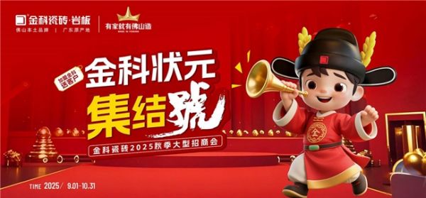 欲成器者,必承其重;欲登科者,必具雄才。金科瓷砖,承袭瓷业巨擘三十余载精研之血脉,以“硬核品质”为基,“运筹帷幄”为翼,双轮并驱。2025年9月1日,鸣锣开启「金科状元集结号——2025秋季大型招商会」,诚邀四海贤达,共赴瓷业新纪元,同书金榜传奇!