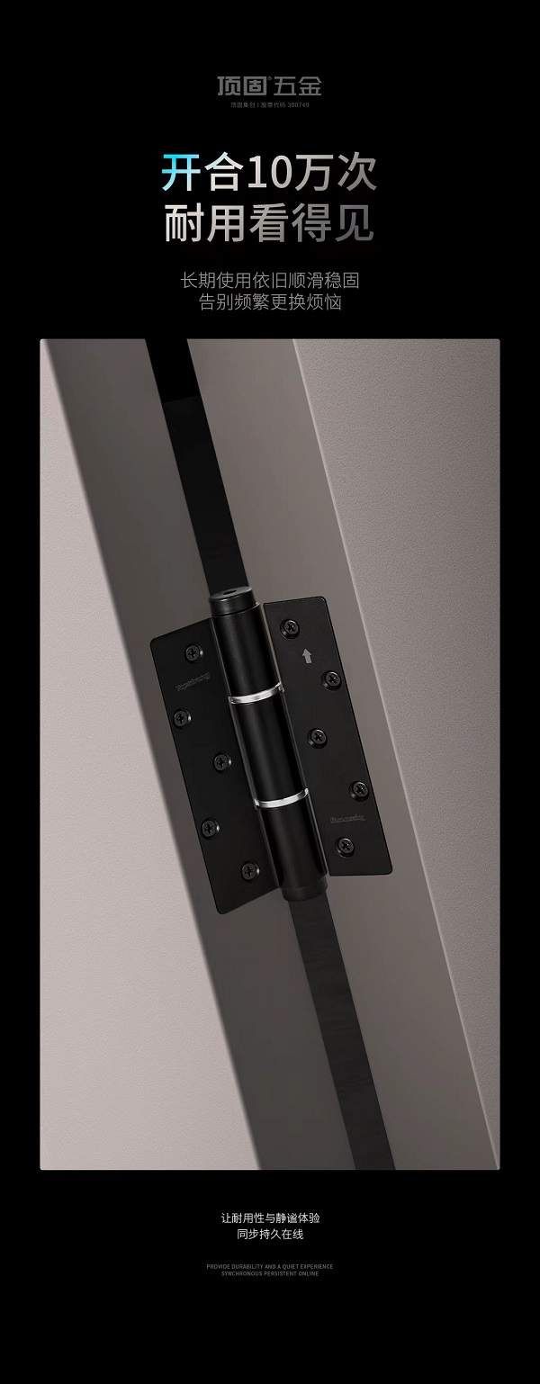 除了安装便捷,顶固静音液压合页的 “稳固性” 也让师傅们赞不绝口。装修师傅都知道,合页的稳固性直接影响门的使用寿命 —— 如果合页材质差、结构薄,长期使用后容易出现松动、下垂,导致门关不严、有缝隙。而顶固静音液压合页采用 “厚铸页片结构”,页片厚度比传统合页增加了 30%,搭配高强度合金材质,能轻松承载不同重量的门扇。
