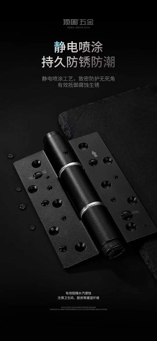 10万次开合依旧丝滑!顶固静音液压合页,防锈防潮,耐用性看得见 “才用了两年,合页就锈得关不上门了!”家住杭州的赵先生看着卫生间的门,一脸无奈——当初装修时图便宜,买了普通的铁质合页,没想到卫生间水汽大,合页很快就生了锈,不仅开门时“吱呀”响,最近甚至连门都关不严实,只能找人上门更换。在居家生活中,合页的“耐用性”往往被忽视,直到出现生锈、松动、下垂等问题,才意识到一款好合页的重要性。而顶固静音液压合页,用“10万次开合测试”“静电喷涂防锈”“厚铸稳固结构”,重新定义了合页的“耐用标准”,让“一次安装,十年省心”成为现实。