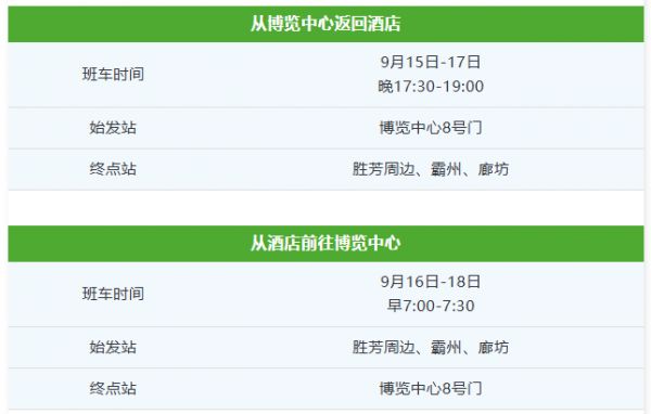 酒店班车信息:展会期间,博览中心8号门设有酒店班车点,提供免费接送服务,快捷安全又舒适,助您无忧观展!