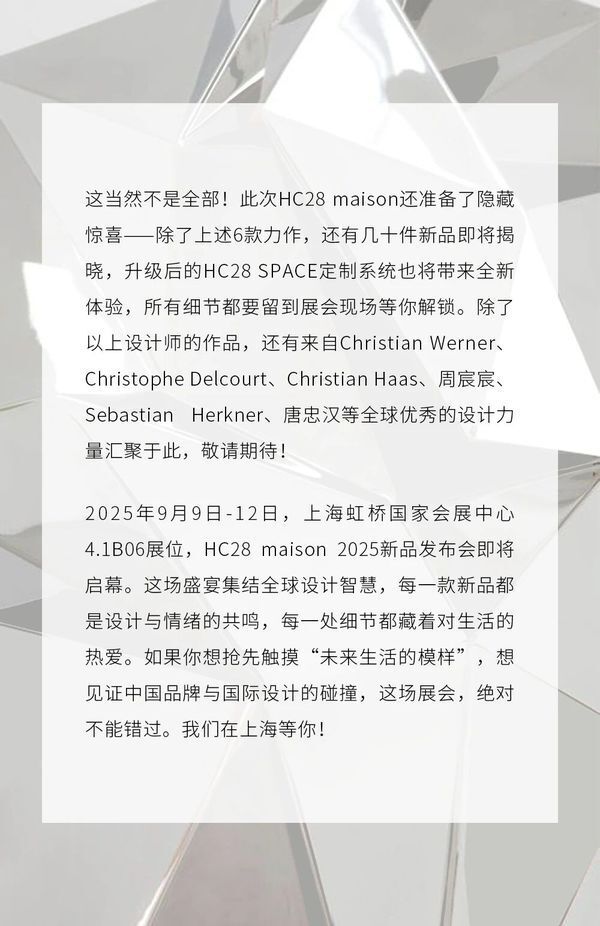 全球设计大师携手HC28 maison|2025新品即将亮相