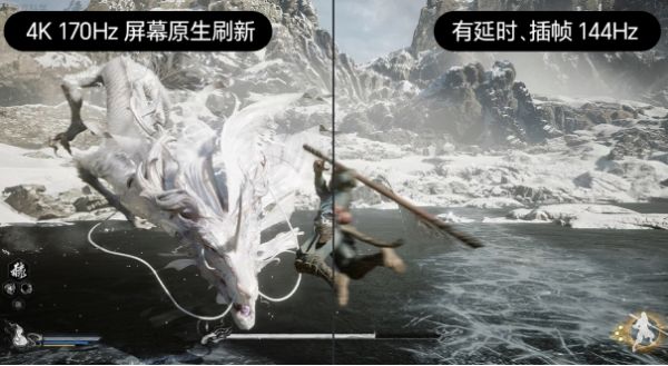 对游戏玩家而言,画质的高刷新率非常重要。海信E8Q Pro支持原生4K 170Hz高刷,动态刷新率达330Hz,配合极光瞬影引擎,实现背光与响应时间的完美同步。在实际游戏体验中,比如玩《黑神话:悟空》时,面对亢金龙关卡密集的落雷攻击,超低延迟和无拖影特性让玩家能精准闪避。即便亢金龙快速移动或腾空,画面依然流畅稳定,不会出现撕裂,还能清晰展现龙鳞等细节,带来沉浸式游戏体验。
