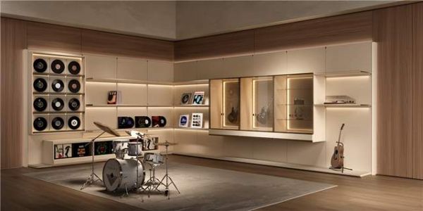 而潮流音乐爱好者则能在「峪」系列中找到专属的音乐角落。系列设计黑胶收纳模块与定制展示模块,黑胶收纳模块采用圆弧设计,可有序存放各类黑胶唱片,同时有效防止唱片与乐器在收纳过程中出现磕碰,既满足了黑胶唱片的收纳需求,又能通过定制展示模块将珍藏的唱片与乐器作为空间装饰,让每一次音乐聆听都成为沉浸式的享受,每一次朋友欢聚都能在旋律碰撞中升温。