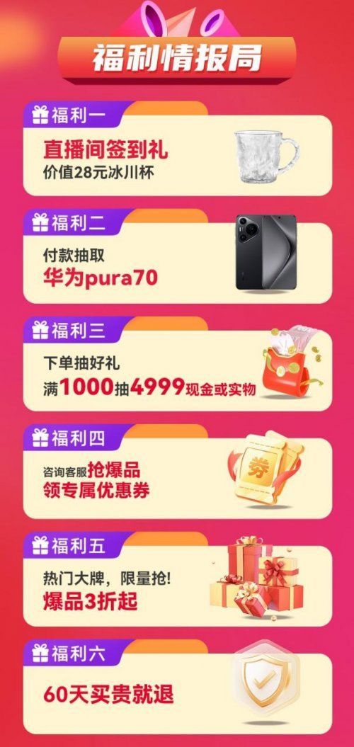 1. 精选爆品 3 折起:展会期间,全场众多爆款产品低至3折起售,价格超乎想象的亲民,真正做到让您花小钱办大事; 2、直播间签到礼:价值28元冰川杯; 3、下单抽好礼:下单满1000元,可抽至高4999元现金或实物。