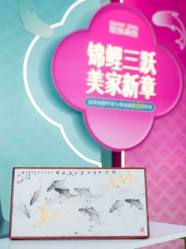 通关过后,费启鸣成功解锁专场直播锦鲤福利 “1999元厨卫瓷砖套餐”,直播间下单、咨询热情高涨!最后,费启鸣在限量版锦鲤艺术岩板画上留下了珍贵的签名,为“锦鲤三跃美家新章”的第二场专场直播画上完美的句号。