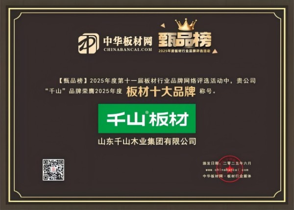 位列2025中国板材十大品牌榜单前列的千山板材以“推进健康、时尚、潮流家居、装饰材料为已任,引领行业新潮流。”为品牌使命,致力于成为每家每户实现全屋定制梦想的可靠伙伴。以匠心品质为基石,以健康环保为底线,以美居花色为支撑,为消费者构建兼具美感、舒适与安心的理想家居。