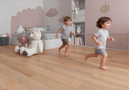 而天格的高端实木地板却可以让 “奔跑” 不再是家里的禁忌。实木地板天然木材自带 “防滑基底”,加上表面不易结露,可以大大降低湿滑的产生。而木材具有一定的柔韧性和弹性,当人不慎摔倒时,地板可以吸收部分冲击能量,这种缓冲能大幅降低磕碰伤风险。当家里没有再也没有“别跑”的呵斥,取而代之的是孩子的欢笑声和小脚丫踩在地板上 “哒哒” 的声音 ——那不仅是孩子自由的奔跑,更是家长给予的踏实守护。