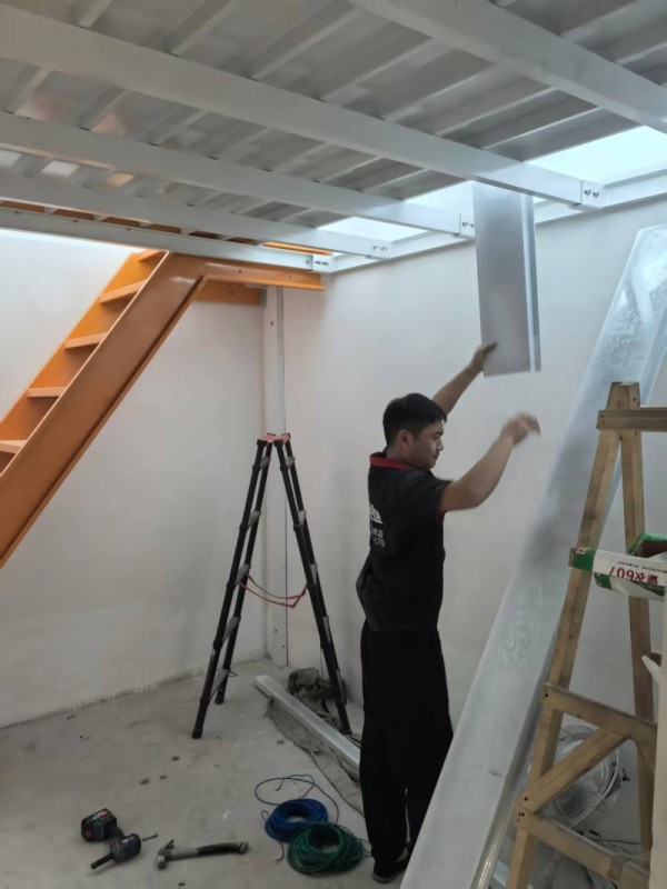 工厂配备专业钣金技术团队,可根据设计方案精准加工钢结构框架、折叠楼梯、嵌入式收纳柜体等核心构件 —— 相较于外购标准件,自有工厂生产的构件能与储藏室空间尺寸、承重需求高度匹配,例如针对异形户型储藏室,可定制弧形钣金承重梁;针对小户型需求,可生产超薄型收纳柜体,最大限度节省空间。同时,工厂采用环保达标、承重等级达标的钢材原料,所有构件出厂前均经过荷载测试与防腐处理,确保后期使用安全耐用。“有了自有工厂,我们能将设计方案中的细节1:1落地,避免‘设计好看却无法施工’的问题,工期也能比行业平均水平缩短20%。” 吴工介绍道。