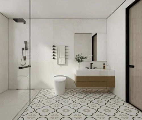 “南法假日”系列则将法国南部小镇的慵懒风情融入设计之中。粗粝石墙、手作陶罐与碎花布艺的意象被提炼为极简线条与抽象花卉图案,散落在砖面之上,形成自由随性的视觉节奏。搭配黑白色调墙面砖使用,既保留了田园诗意,又不失现代时尚感,让客厅或厨房充满浪漫情调。