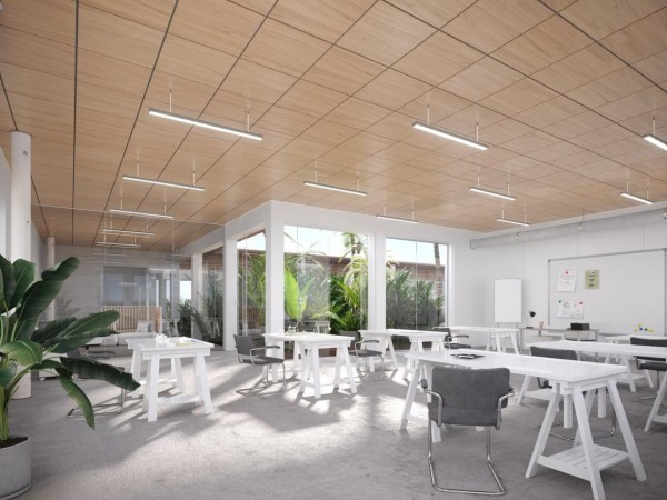 吸音蜂窝夹心复合吊顶拥有超乎寻常的平整度,而且大尺寸面板让视觉上更具有冲击力和统一性,大气简约;细腻的外观,高品质加工,让材料更具有质感和时尚品味。性能方面也毫不逊色,吸音、阻燃,是办公、图书馆等公共空间的适配选择。更重要的是安装简易,工期短,成本可控。