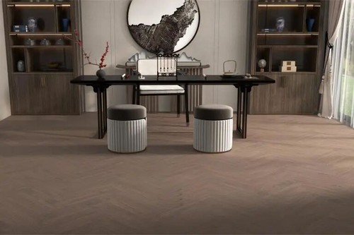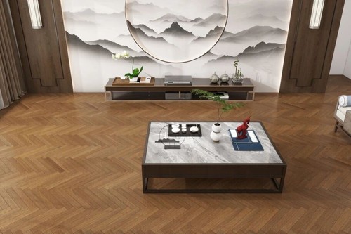 天格高端实木地板“胡桃棕Plus”柔和的胡桃色调恰似中国传统绘画中的水墨色彩,其采用的经典工字拼装方式,深谙东方美学“大道至简”的智慧,以一种不事张扬的规整韵律,完美衬托出达比马木的天然肌理与高级美感
