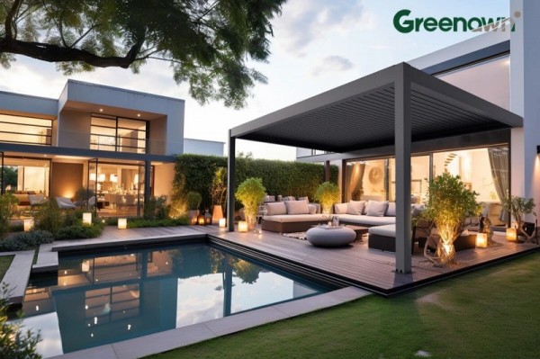 格绿朗始终倡导“设计重构人与空间的关系”的理念。维拉遮阳百叶篷适用于庭院、露台、泳池等多种室外场景,通过精心设计的百叶片,在遮阳的同时营造出斑驳的光影效果,夜晚则可通过内置灯光系统营造舒适氛围,让用户在不同天气条件下均能享受高品质户外时光。产品不仅具备功能性,更成为连接人与自然的情感纽带。