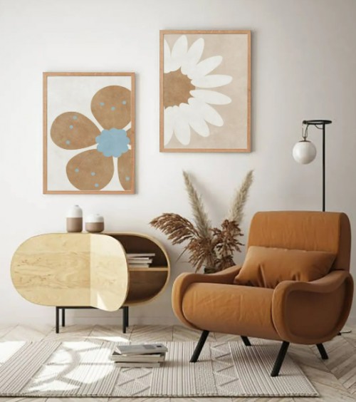 首先是水刀插画系列。产品规格为420×600mm,尺寸适中,适合用于客厅、餐厅或卧室。设计风格偏向简约文艺,图案线条流畅,色彩柔和,采用“威尼斯系列”与“敦煌雅丹系列”两种配色方案。前者以低饱和的灰蓝、米白为主,营造出地中海沿岸的宁静氛围;后者则提取大漠戈壁的肌理与色调,沉稳而富有质感。这两类色彩体系,既能融入现代仿古、侘寂风、中古风等主流家居风格,也能与田园风空间自然衔接,为墙面增添一层耐人寻味的视觉层次。