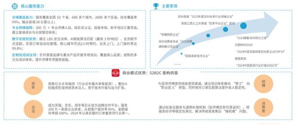 通过多个版块呈现鲁班到家如何通过全品类服务覆盖、标准化流程管控、动态师傅体系三大维度,构建起大家居后市场服务的核心竞争力,为互联网家居行业售后服务提供最优解决方案,为蓝领师傅提供技能变现渠道和依托订单匹配算法提升收入稳定性,从而解决企业、消费者和师傅三端用户的痛点问题。