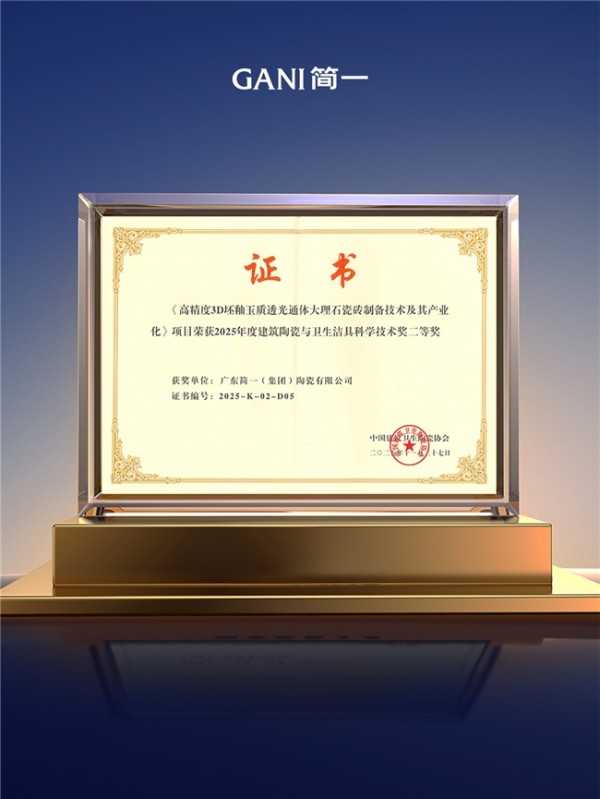 近日,中国建筑卫生陶瓷协会组织召开2025年度科技标准质量工作会,并在会上颁发了多项行业重要奖项。清远市简一陶瓷有限公司与广东简一(集团)陶瓷有限公司凭借“高精度3D坯釉玉质透光通体大理石瓷砖制备技术及其产业化”项目,荣获“建筑陶瓷与卫生洁具科学技术奖-二等奖”。同时,广东简一(集团)陶瓷有限公司还被评为“2025年中国建筑卫生陶瓷协会标准化工作先进单位”。
