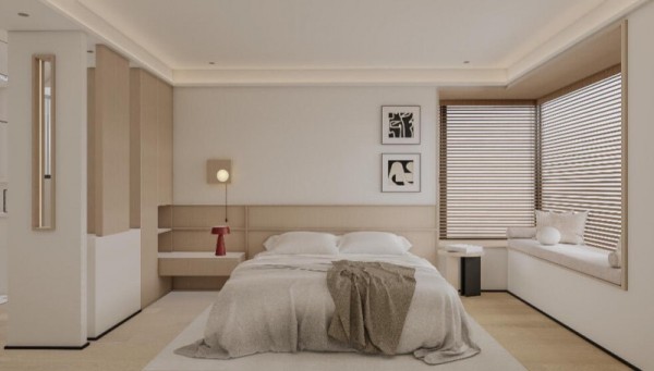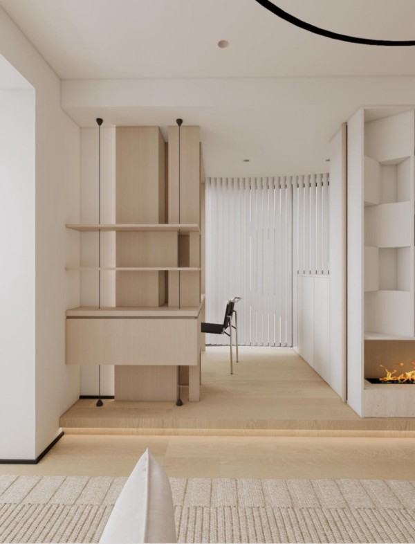 墙上的艺术画作以几何形态与莫兰迪色调点缀,看似简单的色彩组合,实则是设计师为孩子精心准备的“色彩启蒙课”:让他们在日常起居中,悄然建立对美学秩序的最初认知. “触摸是孩子认识世界的本能”,设计师在空间中运用木材、棉麻等天然材质:STOKKE婴儿床的木质纹理传递者自然的温度,棉麻的柔软触感安抚者孩子的触觉神经,原木小桌椅的肌理则邀请孩子用小手去探索“粗糙与光滑的差异”.