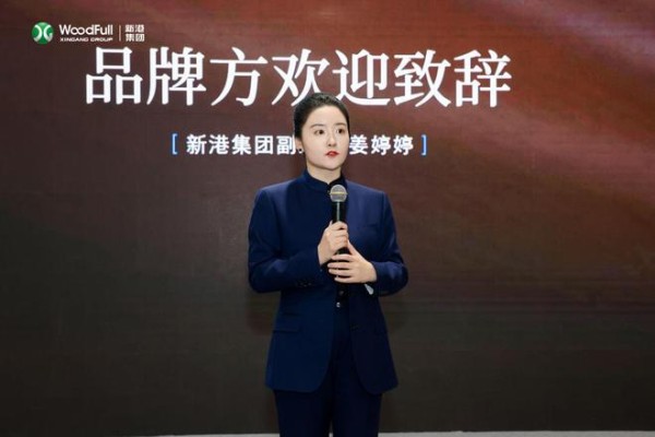 发布会伊始,副总裁姜婷婷上台发表致辞,她表示,这是新港第一次参加设计周,但在此之前,新港已经开始联合设计师群体为终端客户服务。此次与新港WoodFull首席设计顾问唐忠汉老师共同研发的大师系列便是结晶之作。