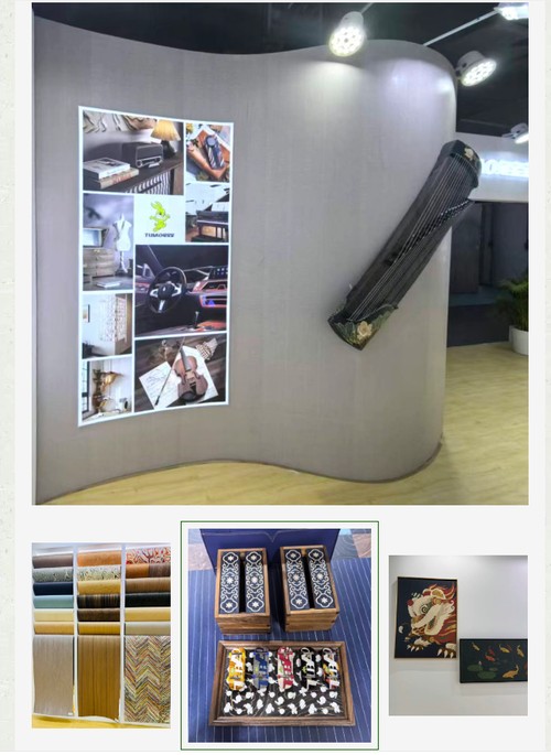 个性化表达从不缺席,定制化拼花造型满足小众审美,每一处纹路都彰显独特态度;融入中国元素的木饰画惊艳亮相,醒狮的祥瑞威严与“金玉满堂”的美好期许,通过科技木的细腻纹理娓娓道来,其中打造的古筝更将传统音韵与现代材质完美融合,演绎东方美学的当代表达。