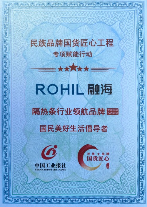 在国货崛起的时代浪潮中,坚守品质、专注创新的中国品牌正脱颖而出。近日,福建融海新材料科技有限公司旗下品牌“融海(ROHIL)”凭借其在隔热条领域的卓越表现,荣获中国工业报社国货品牌研究中心颁发的“民族品牌国货匠心工程”认证,被评定为“隔热条行业领航品牌专项行动入选企业”,展现了民族品牌的技术实力与匠心精神。