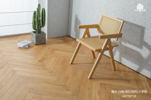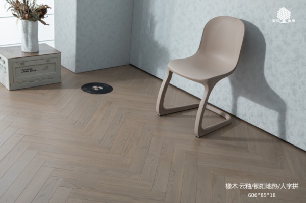 在欧洲,橡木是皇室御用之木,是红酒桶的黄金搭档,但在安信的新品中,它却以一种更东方的姿态登场:木纹被轻柔淡化,山形纹理若隐若现,搭配人字拼的现代铺法,既保留了天然木质的灵动,又呈现出干净雅致的平面效果。