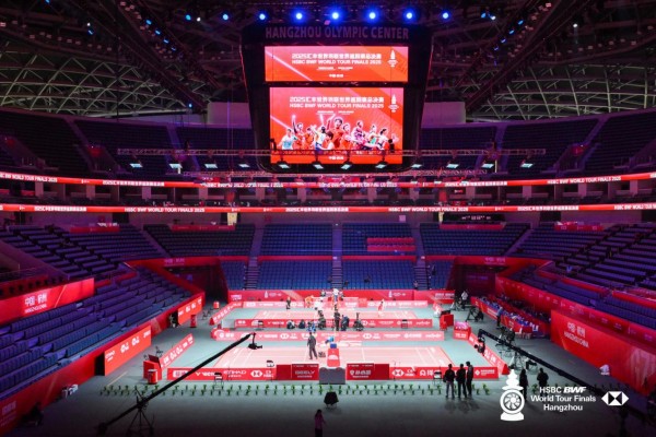 12月17日-12月21日,杭州奥体中心体育馆,2025汇丰世界羽联世界巡回赛总决赛激战正酣。