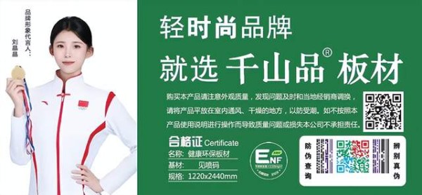 冠军之选,源于实力契合。千山品板材凭借环保领域的硬核实力、产品设计的创新能力与全链条的品质管控,成为健康时尚家居的优选品牌。而刘晶晶的阳光赋能,更让这份实力与美好被更多人看见,共同书写家居行业的品质新篇章。