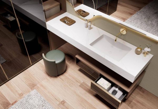 正是这种将冰冷金属转化为有温度艺术品的非凡能力,让乾妃家居一跃成为不锈钢浴室柜风格的引领者,从意式极简到法式轻奢,二十年来,乾妃卫浴一次次站在不锈钢浴室柜时尚前沿,成为不锈钢家居风格标杆。并被众多高端住宅、精品酒店所青睐,用实绩证明:不锈钢,已成为当代高定家居中,兼具前瞻科技与永恒美学的风格符号。