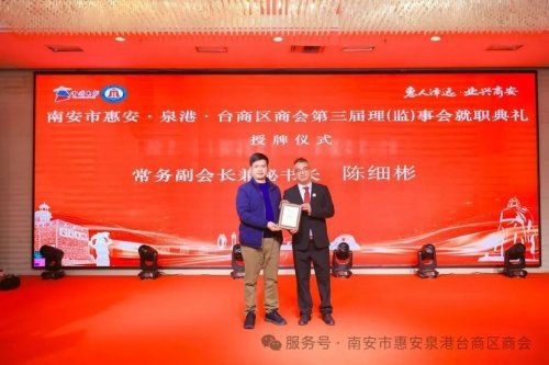 对商会今后发展,他提出五点希望:一是筑牢政治引领“主心骨”,坚持把党的领导贯穿商会工作全过程,推动党建与会建深度融合,团结引导会员听党话、跟党走,确保商会发展始终方向正确、根基牢固;二是做优会员服务“贴心人”,聚焦企业发展的痛点难点,做实政策推送、融资对接、法律咨询等服务,促进会员之间信息互通、资源共享,助力企业拓市场、强实力;三是架好两地发展“连心桥”,积极宣传南安、惠安、泉港、台商多地的营商环境和机遇,推动产业对接、项目合作与人才交流,引导更多优质资源汇聚两地,为高质量发展注入强劲动能;四是勇担社会责任“示范者”,弘扬“爱拼敢赢”的企业家精神,引导企业诚信经营、回馈社会,积极投身公益、乡村振兴等事业,在履职担当中提升商会形象与影响力;五是强化自身建设“模范生”,持续加强规范化、制度化建设,提升秘书处专业化服务水平,创新工作机制,真正把商会建成会员信赖、社会认可、政府放心的“商会之家”。