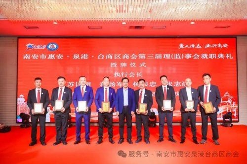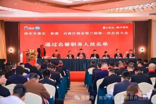 当天还举行了南安市惠安泉港台商区商会第三届第一次会员大会,会议审议通过了商会章程、会费标准和管理办法、选举办法等,选举了新一届理监事会成员,讨论并通过名誉等职务名单。