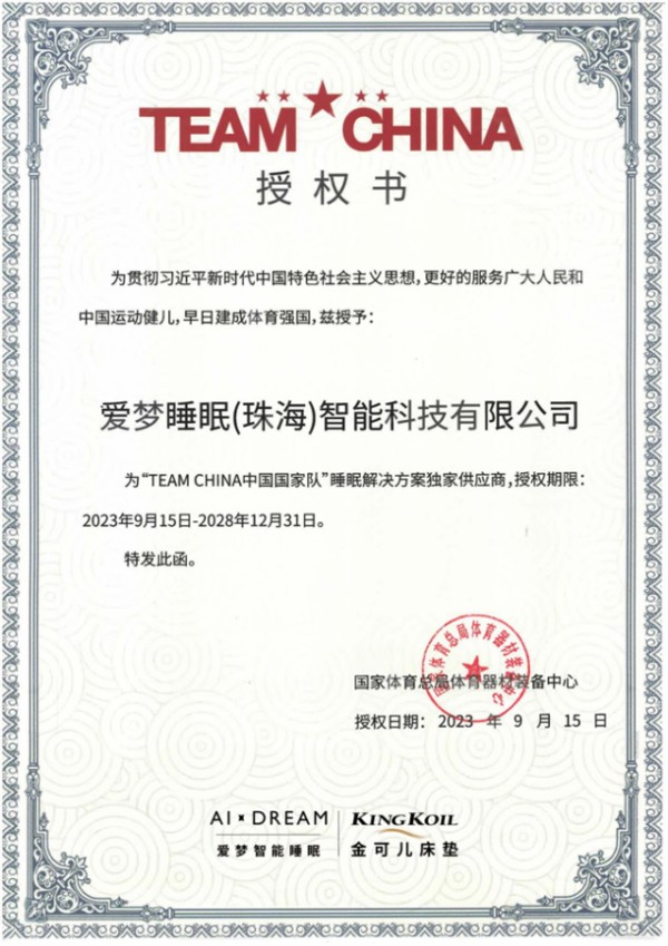 金可儿护脊床垫助力中国国家队,让世界见证中国力量爱梦集团携舒达、金可儿,倾献8000多件睡眠产品助力国家队荣耀赛场