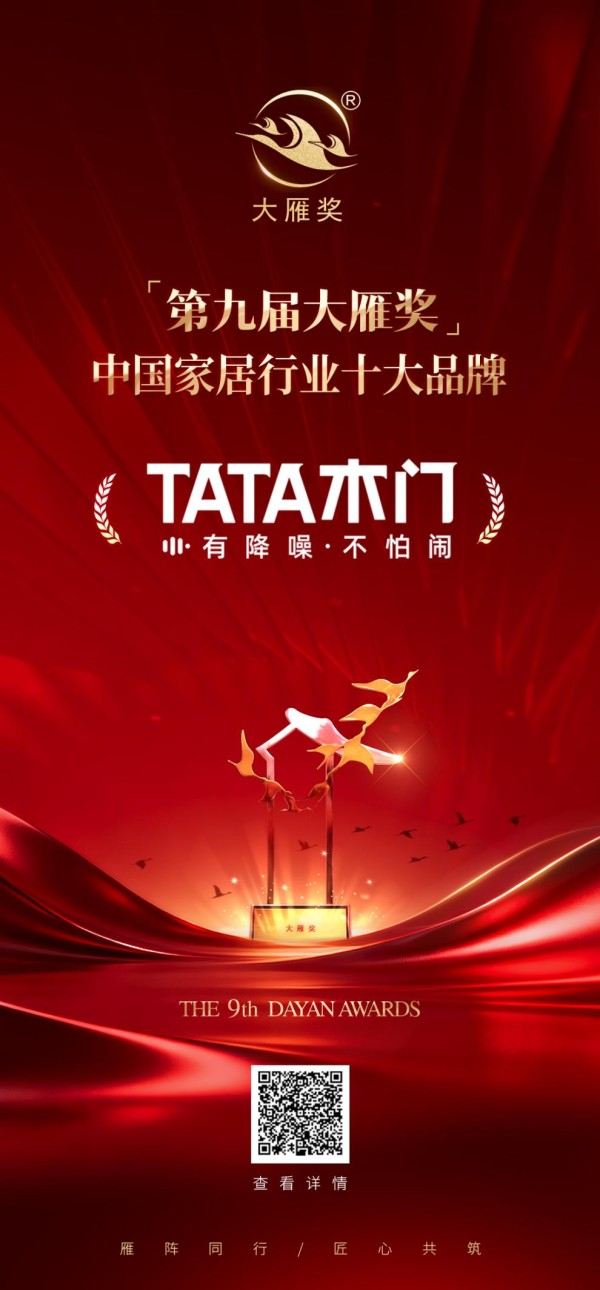 TATA木门双喜临门! 斩获大雁奖“中国家居行业十大品牌” 纵瑞原荣膺“年度金翎人物”