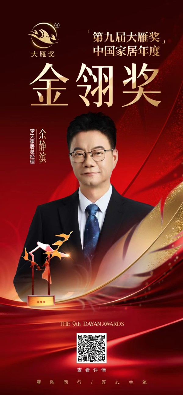喜报!梦天家居总经理余静滨先生荣膺「第九届大雁奖·中国家居年度金翎人物」奖项
