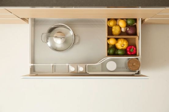锅具抽大容量设计配合卓越承重能力,耐用易清洁,让笨重的锅具收纳变得轻松优雅。