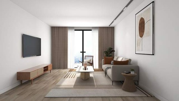 以浅色为空间基调,结合现代的简明线条勾勒,再添加绿植、挂画、窗帘等略带清冷感地材质与质感,整体空间与墙布、原木的清雅气息互为渗透,融为一体,转化凝结出舒缓、静谧的自然因子,开辟出淡然的生活意趣。