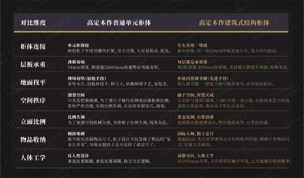 高定木作普通单元柜体 vs高定木作建筑式结构柜体
