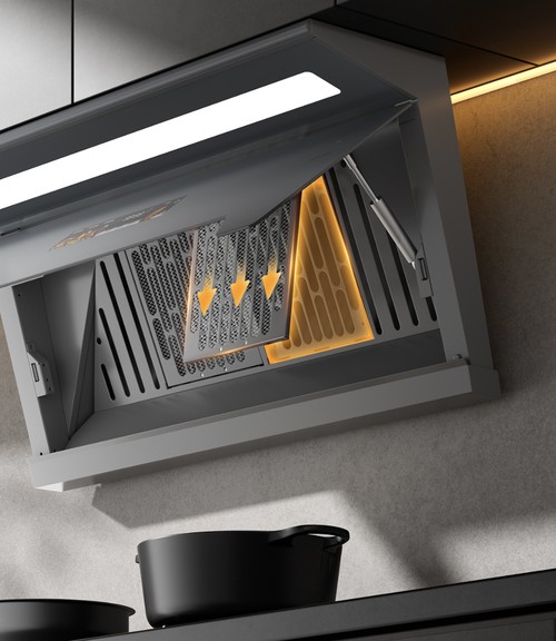 厨房不仅是功能空间,也是家居美学的重要组成。樱花吸油烟机Q801采用沉稳经典的高级灰配色,尽显精致质感。无论何种装修风格,都能自然融入,为家居空间增添一份优雅格调。365mm灵薄机身,齐平橱柜,视觉更加整洁统一,下厨时视野开阔,操作更加舒适,让身心尽情舒展。更有体感挥手智控功能,让科技真正服务于烹饪体验,无需触控面板,也能在挥手间完成吸油烟机的启停调档,不易沾染油污,也让操作更顺手、更洁净、更便利。