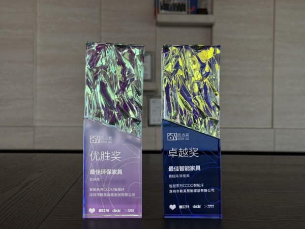 3月15日,在深圳国际家具展期间举办的第四届质点奖颁奖典礼上,联美科技旗下智慧睡眠品牌CCOO自在凭借过硬的产品实力与绿色发展理念,荣获“最佳智能家具”与“最佳环保家具”两项大奖,获得行业权威认可。