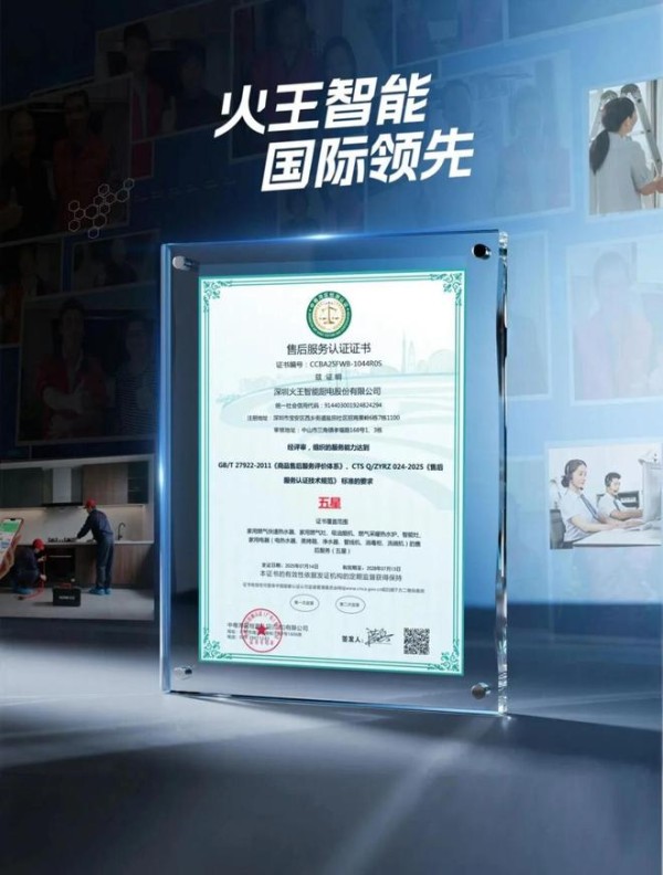 7月,经中粤湾区检测评审,火王荣获售后服务“五星”认证;
