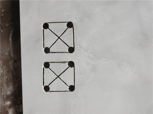 从缝隙到转角,从开孔到收边,简一把毫米级标准贯穿于铺贴全流程,这也是其远超普通密缝铺贴的关键。墙面阳角采用海棠角工艺,将瓷砖边缘45°斜切对接后打胶,打造圆润的V形转角,既避免磕碰受伤,又让线条更精致;L角切割遵循“先开孔再切割”原则,搭配不锈钢角片与环氧AB胶加固,从根源杜绝应力集中导致的开裂。就连插座线盒、地漏这类小细节,也做到了极致精准:插座开孔先在四角预开圆孔再切割,预留15mm标准孔距保证横平竖直;地漏做四角针孔处理,让功能性与美观度完美融合。