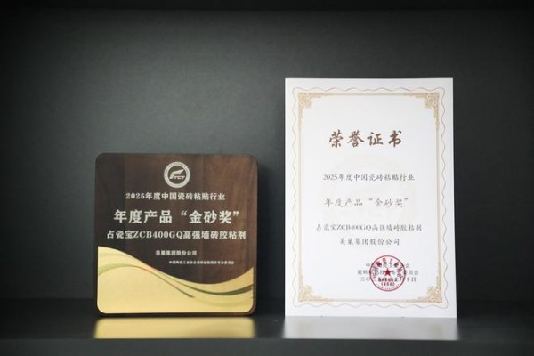 产品层面,占瓷宝ZCB400GQ高强墙砖胶粘剂此次荣获“金砂奖”,再次彰显了美巢在瓷砖胶粘剂领域的深厚积累。占瓷宝系列产品已连续多年荣获中国瓷砖粘贴行业年度产品“金砂奖”,这不仅体现了产品持续稳定的市场表现和行业认可,也反映出美巢在瓷砖粘贴材料领域始终坚持以更高标准推动产品迭代升级。
