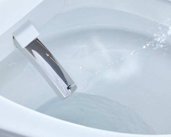 卫生间是家里最容易滋生细菌的地方,智能马桶的喷枪、水路如果清洁不到位,很容易成为细菌传播的温床。传统智能马桶的杀菌模块通常单独组装在机芯内部,水流需要经过较长的管路才能到达喷枪,这就导致杀菌后的水流在输送过程中可能再次接触管路内壁的细菌,形成“二次污染”。而恒洁R9智能马桶采用喷枪水路专利除菌技术(专利号ZL 2024 2 1606039.3),把杀菌模块直接集成在喷枪的最前端,水流在喷出的瞬间就完成了杀菌处理,真正实现了“零距离除菌”,让每一滴冲洗的水都干净无菌。