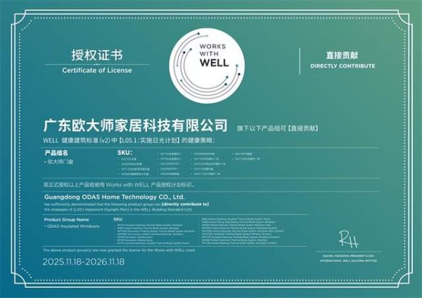 作为IWBI基石级会员,该品牌产品深度契合WELL国际健康建筑标准,自主研发的O5隔热保温降噪系统,将航天技术应用于门窗制造,搭配第二代4SG玻璃与欧洲进口密封胶条,既实现高效隔音隔热,又能有效阻隔紫外线,守护家居舒适与健康。