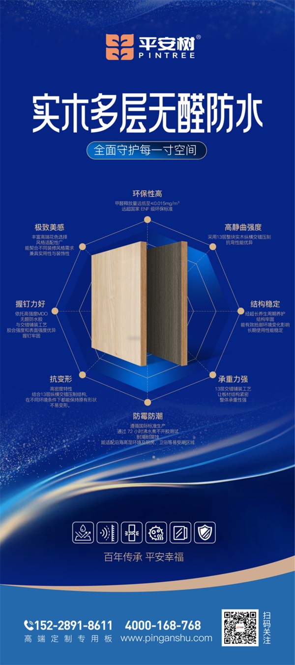 作为深耕板材领域四十余载的家居品牌,平安树始终以“品质为本、绿色先行” 为核心理念,逐步成长为集研发、设计、生产、销售、服务于一体的综合性家居企业,构建起多元化产品矩阵。其中,以 “实木多层为基,海洋板为核” 的实木多层海洋板家具板,是平安树核心竞争力的集中体现,也是此次斩获生态板十大品牌的关键支撑。同时,平安树作为海洋板团体标准制定企业,凭借深厚的技术积累与专业积淀,在海洋板领域拥有不可替代的权威话语权,为产品实力筑牢了坚实基础。