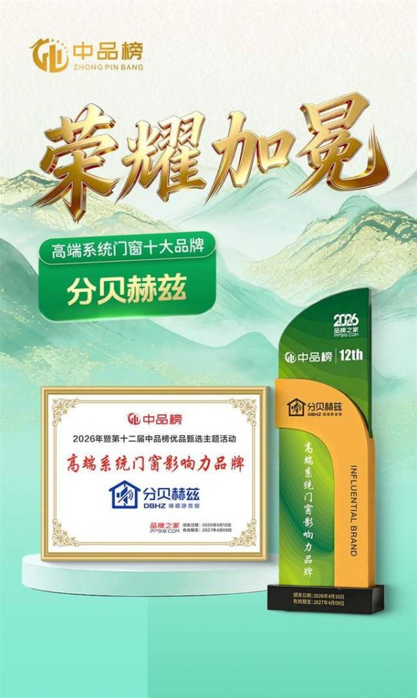 此次登榜2026中品榜高端系统门窗十大品牌,是分贝赫兹品牌实力的有力彰显,更是行业对其静音赛道深耕成果的认可。未来,分贝赫兹将以这份荣誉为新的起点,持续聚焦静音与节能技术创新,精进生产工艺,优化服务体系,坚守为家庭打造静谧、环保、安全的居住空间的使命,持续推动高端系统门窗行业向精细化、差异化方向发展,为消费者带来更优质的家居体验。