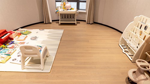 在环保层面,天格地板甄选全球优质天然原木,从源头保障健康。在产品加工制造过程中,更是选用高端环保涂料,确保加工过程中无工业甲醛的添加。此外,天格地板的高环保性并没有局限于地板本身,其相关配件及辅料也同样延续了绿色环保理念,让孩子可以毫无顾虑地趴在地上玩耍、触摸,让父母彻底摆脱地面环保隐忧的焦虑。同时,实木的材质自带天然弹性,相较于冰冷坚硬的瓷砖,能有效缓冲孩子学步时的摔倒冲击力,也能减轻玩耍时磕碰带来的伤害,让孩子可以大胆奔跑、肆意探索,无需被“怕摔倒”的顾虑束缚天性。从保护视力的方面来说,实木地板色彩柔和、温润不刺眼,没有强光反光,能温和呵护孩子娇嫩的视力,避免长期接触刺眼光线对视力造成损伤,为孩子视力健康发育筑牢坚实防线,让孩子在舒适的视觉环境中安心成长。