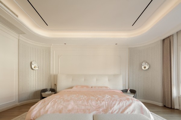 在彭景的设计理念里,设计的最高价值,从来不是视觉上的惊艳夺目,而是情绪上的治愈与安放。私宅的终极意义,是让居住者卸下尘世的纷扰与疲惫,在专属的方寸之境中,寻得内心的松弛与安心,而卧室,便是这份松弛感的核心载体。他沿用国际顶层酒店的设计逻辑,不刻意追求华丽,只专注于居住的本真,把“舒适与安心”融入每一处细节。