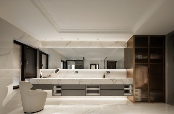 他大胆摒弃法式设计中繁复的雕花与厚重线条,萃取其浪漫内核与人文肌理,以利落流畅的线条、克制内敛的色彩、匀称精准的比例,搭建起整个空间的精神骨架。“好的设计藏在细节里,如同顶奢,于细微处见初心。”这是彭景的设计哲思,更是他的实践准则。他让天然木材的温润、天然石材的厚重与不锈钢的利落,在空间中完成一场温柔对话,材质衔接处毫厘必究,既巧妙规避了工艺隐患,更彰显出雅致高级的空间格调。