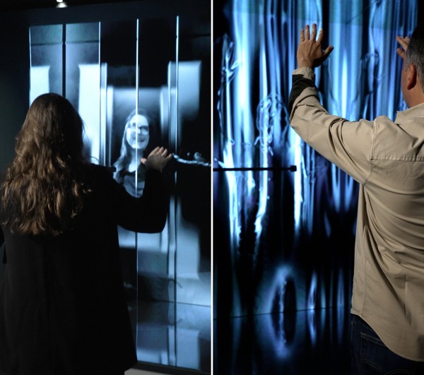 走进镜面空间,当 LED 屏幕熄灭,深色玻璃如镜,映照观者的身影;当影像被唤醒,现实边界悄然消融,流动的光影与三维动画在空间中不断延展。