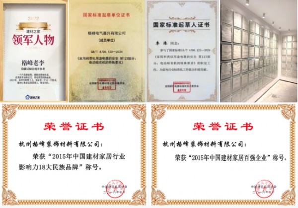 参与国家标准起草制定 格峰发明隐藏式晾衣机助力行业高标准发展从首台隐藏式晾衣机发明到国家、行业标准制定,格峰推动晾衣机行业进步